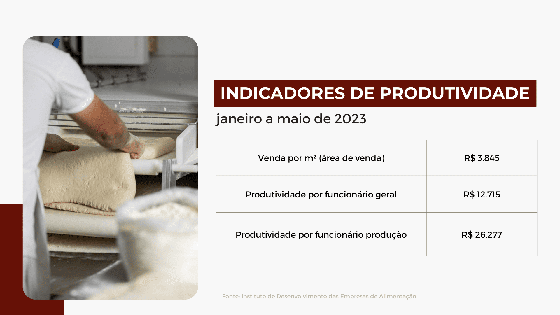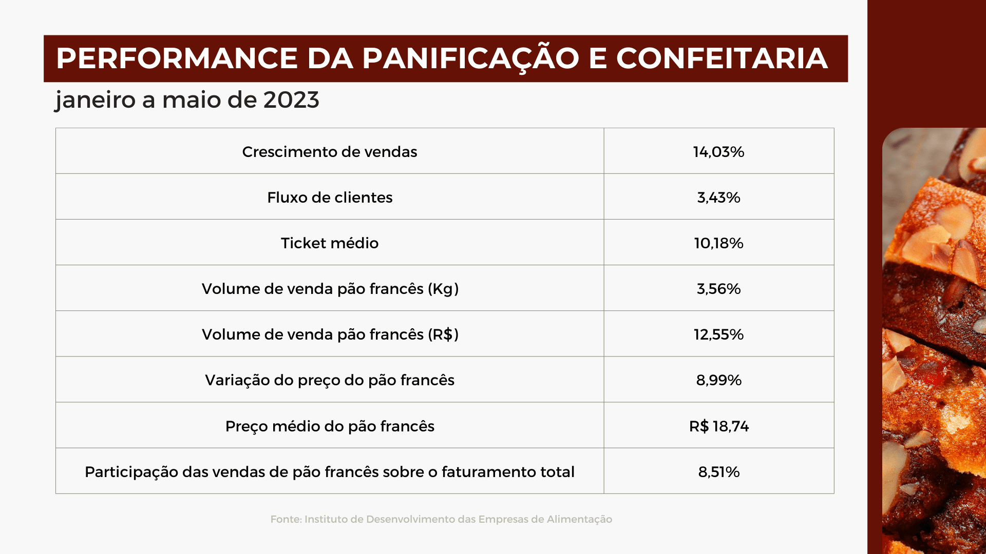 A retomada do crescimento da venda do pão francês – com o resgate de volume de vendas, ajudando a reforçar a recorrência das visitas ao ponto de venda – tem relação direta com o volume em dinheiro do alinhamento de preço de 8,99%, uma vez que esse posicionamento não aconteceu simultaneamente ao aumento de insumos e do custo operacional.